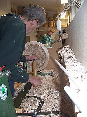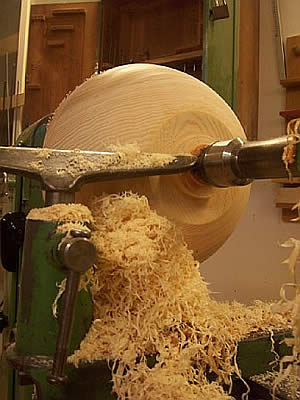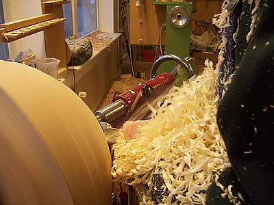 Zeit hat das frisch geschlagene Holz den wenigsten Saft. Wir drechseln aus