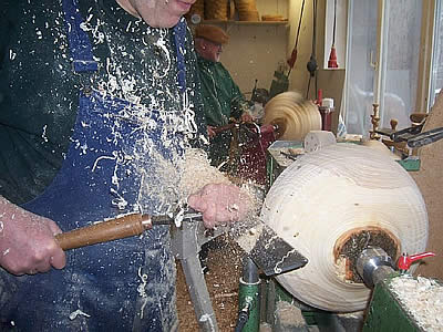Je nach Kurs wird mit der Röhre, dem Meißel oder dem Haken gedrechselt, aber